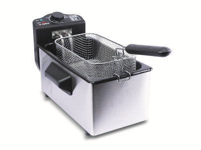 BESTRON Öl-Fritteuse XL DF402, 4,5 L, Cool Zone, 3 Körbe, 2000W, silber