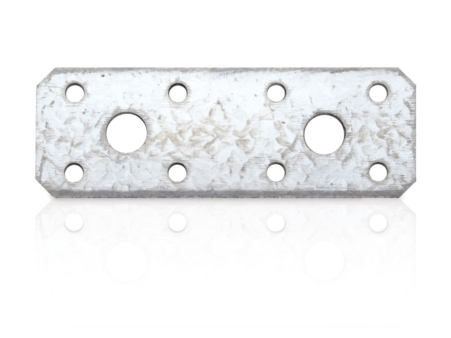 Verzinkter Metallverbinder mit 2 mm Stärke zum Verbinden oder Befestigen von Holzbauteilen mittels Schrauben oder Nägeln.