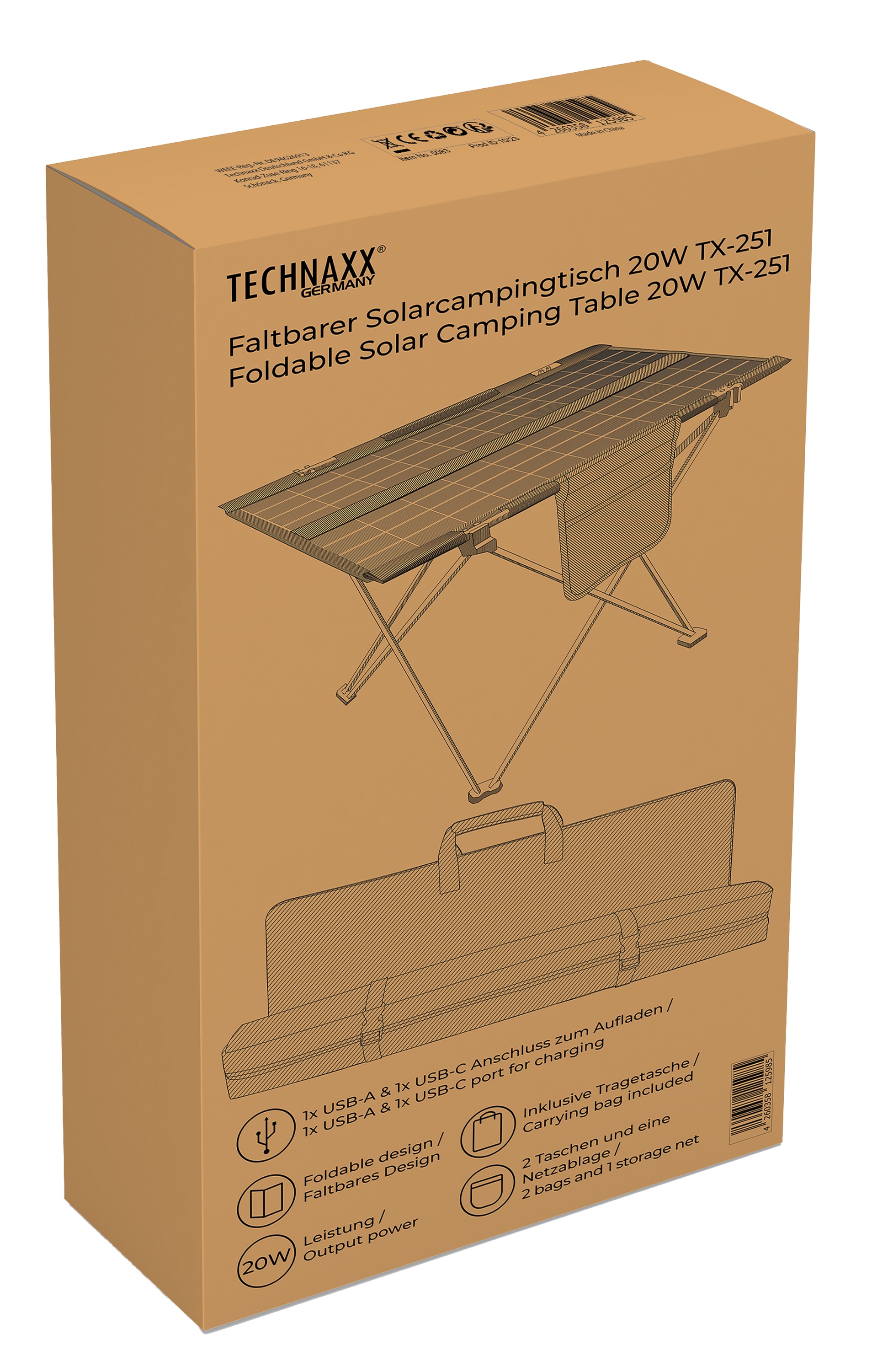 Produktinformationen "TECHNAXX FALTBARER SOLAR-CAMPINGTISCH TX-251, 20W"